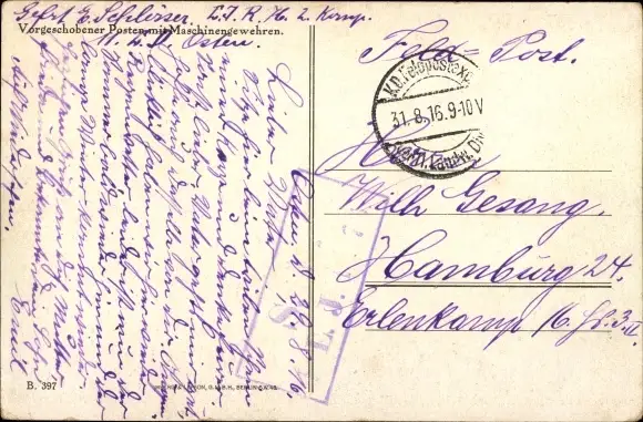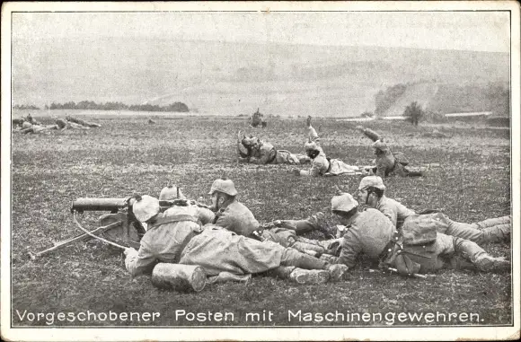 Ak Deutsche Soldaten, Vorgeschobener Posten mit Maschinengewehren, Pickelhauben, I. WK