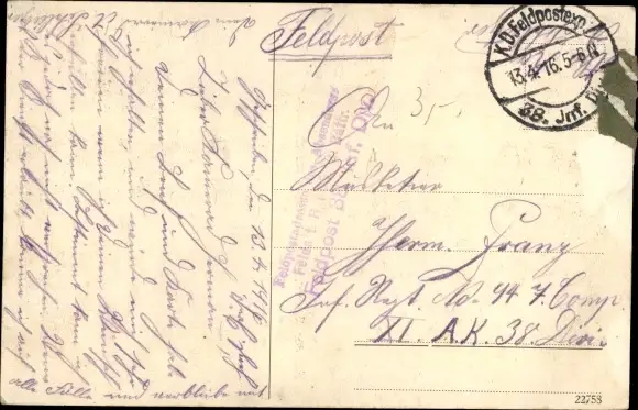 Zustand, siehe Scan, gelaufen, 1916 - ca 9 cm X 14 cm