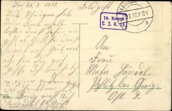 Zustand, siehe Scan, gelaufen, 1917 - ca 14 cm X 9 cm