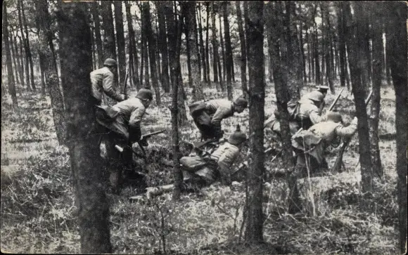 Ak Deutsche Soldaten in Uniformen, Schleichpatrouille, I WK