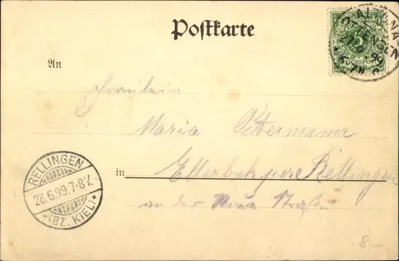 Zustand, siehe Scan, gelaufen, 1899 - ca 14 cm X 9 cm