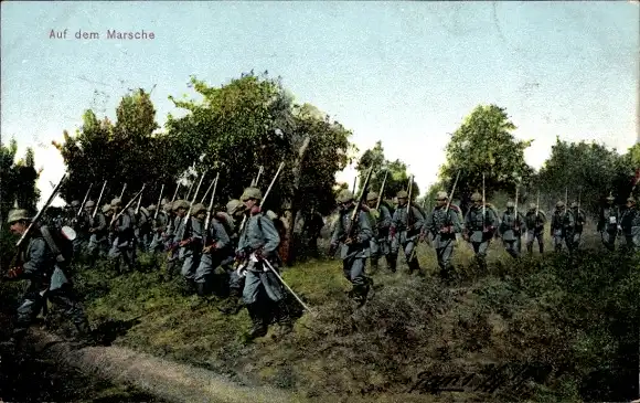 Ak Deutsche Soldaten in Uniformen auf dem Marsch