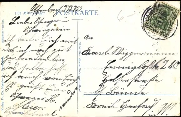 Zustand, siehe Scan, gelaufen, 1913 - ca 14 cm X 9 cm