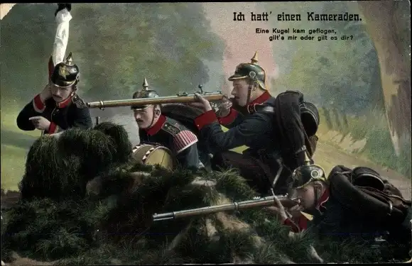 Ak Deutsche Soldaten in Uniformen im Gefecht, Ich hatt einen Kameraden