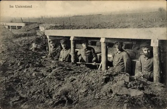 Ak Deutsche Soldaten in Uniformen im Unterstand