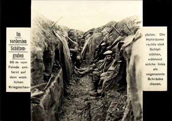 Ak Deutsche Soldaten in Uniformen im vordersten Schützengraben, westlicher Kriegsschauplatz, I WK