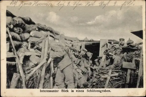 Ak Deutsche Soldaten in Uniformen in einem Schützengraben, I WK