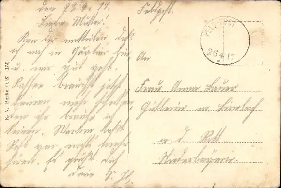Zustand, siehe Scan, gelaufen, 1917 - ca 14 cm X 9 cm
