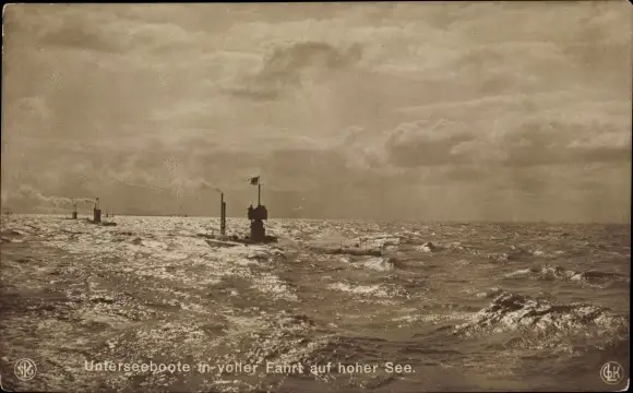 Ak Deutsche U-Boote, Kaiserliche Marine, In voller Fahrt auf hoher See