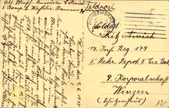 Zustand, siehe Scan, gelaufen, 1915 - ca 14 cm X 9 cm