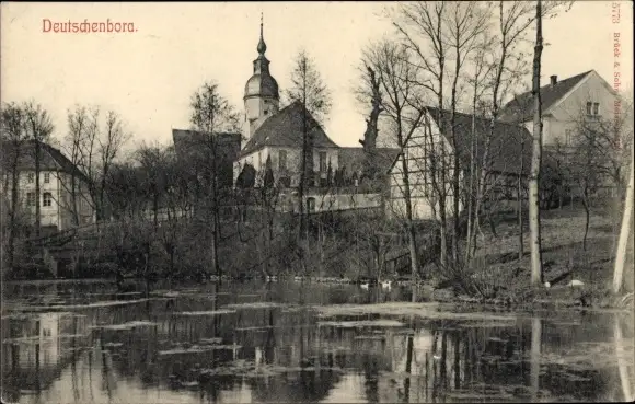 Ak Deutschenbora Nossen in Sachsen, Teilansicht, Kirche, Teich