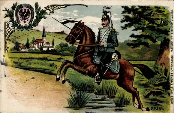 Ak Deutscher Kavallerie-Soldat zu Pferde, Wappen