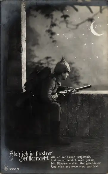 Ak Deutscher Soldat in Uniform, Steh ich in finsterer Mitternacht