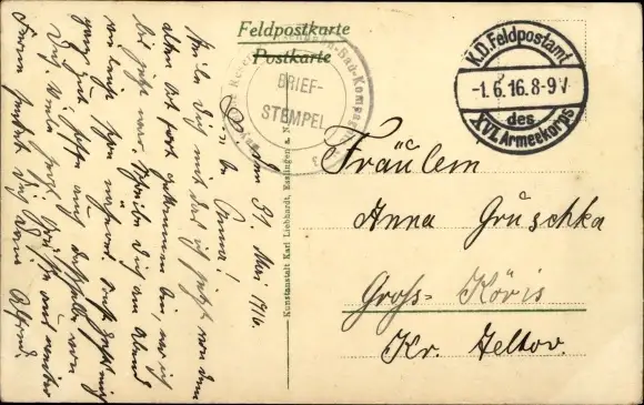 Zustand, siehe Scan, gelaufen, 1916 - ca 14 cm X 9 cm