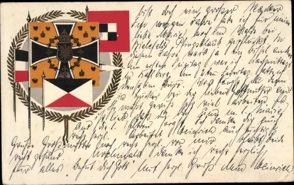 Ak Deutsches Kaiserreich, Flaggen, Lorbeerkranz, 1. WK
