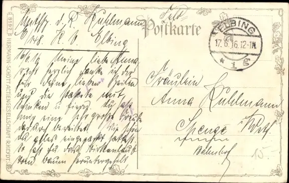 Zustand, siehe Scan, gelaufen, 1916 - ca 14 cm X 9 cm