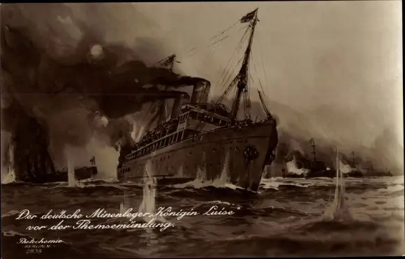 Ak Deutsches Kriegsschiff, Deutscher Minenleger SMS Königin Luise vor der Themsemündung