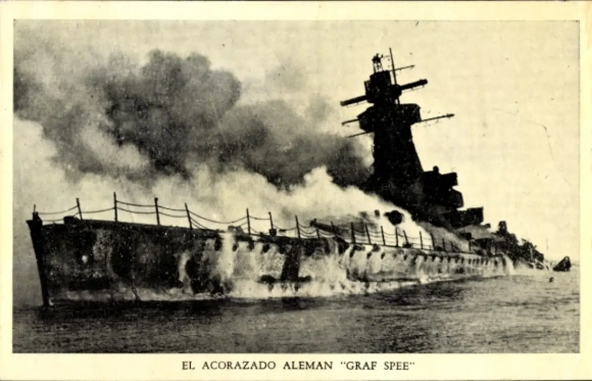 Ak Deutsches Kriegsschiff Graf Spee, Brand