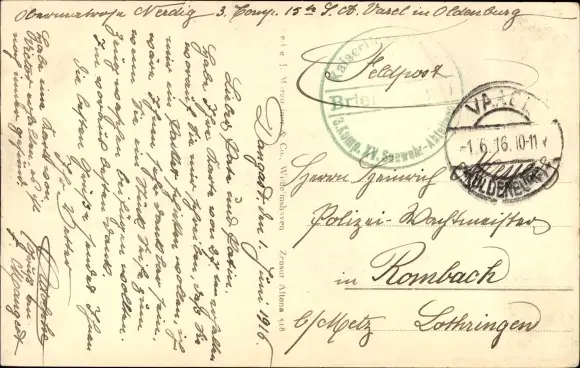 Zustand, siehe Scan, gelaufen, 1916 - ca 14 cm X 9 cm