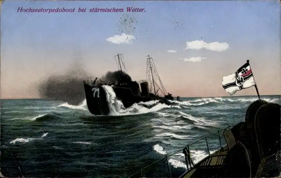 Ak Deutsches Kriegsschiff, Hochseetorpedoboot bei stürmischem Wetter