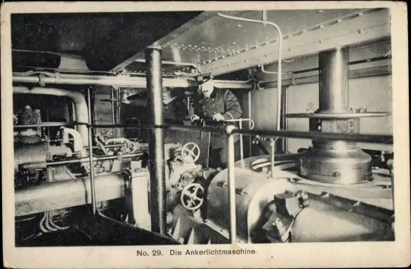 Ak Deutsches Kriegsschiff, Innenansicht, Ankerlichtmaschine, Seeleute