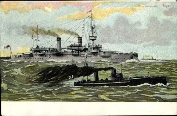 Ak Deutsches Kriegsschiff, Küstenpanzerschiff Hagen, Kaiserliche Marine