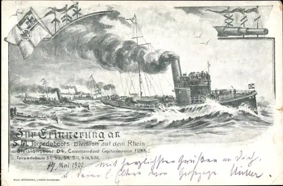 Ak Deutsches Kriegsschiff, SM Torpedoboots-Division auf dem Rhein, Divisionsboot D 4