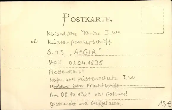Ak Deutsches Kriegsschiff, SMS Aegir, Küstenpanzerschiff