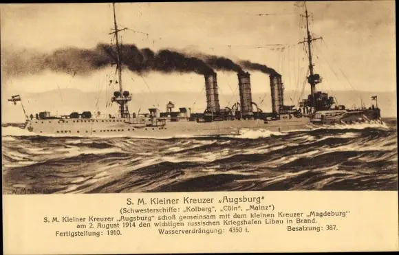 Ak Deutsches Kriegsschiff, SMS Augsburg, Kleiner Kreuzer