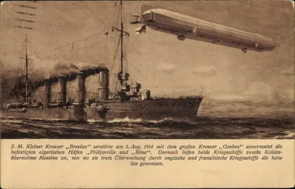 Ak Deutsches Kriegsschiff SMS Breslau, Kleiner Kreuzer, Zeppelin, Marineluftschiff
