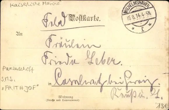Ak Deutsches Kriegsschiff, SMS Frithjof, Panzer IV. Cl., Panzerschiff