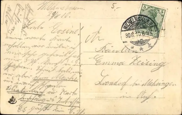 Zustand, siehe Scan, gelaufen, 1910 - ca 14 cm X 9 cm
