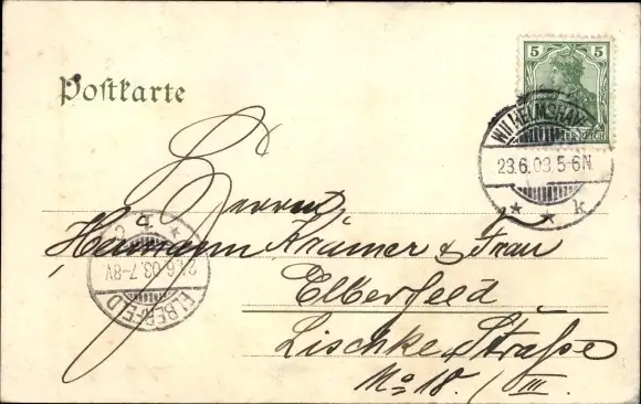 Zustand, siehe Scan, gelaufen, 1903 - ca 14 cm X 9 cm