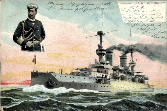Ak Deutsches Kriegsschiff, SMS Kaiser Wilhelm II., Linienschiff, Kaiserliche Marine, Portrait