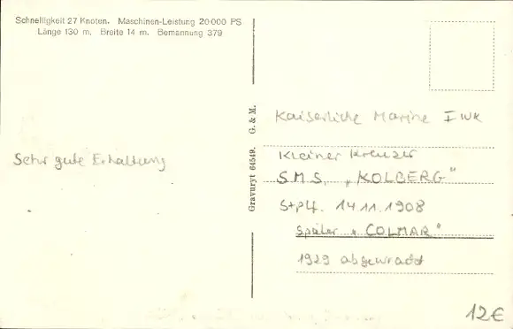 Ak Deutsches Kriegsschiff, SMS Kolberg, geschützter Kreuzer