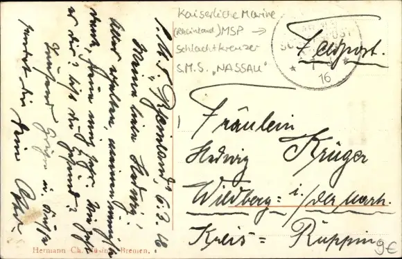 Ak Deutsches Kriegsschiff, SMS Nassau, Schlachtkreuzer