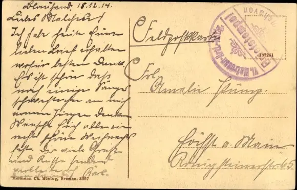Zustand, siehe Scan, gelaufen, 1914 - ca 14 cm X 9 cm
