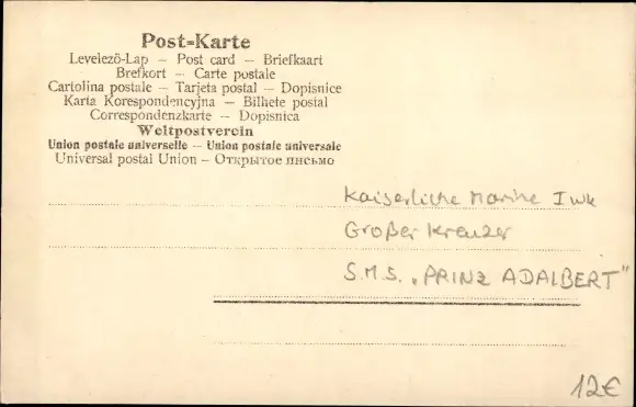 Ak Deutsches Kriegsschiff, SMS Prinz Adalbert, Großer Kreuzer