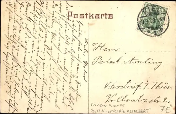 Ak Deutsches Kriegsschiff, SMS Prinz Adalbert, Großer Kreuzer