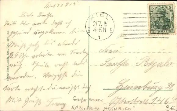 Ak Deutsches Kriegsschiff, SMS Prinz Heinrich, Großer Kreuzer