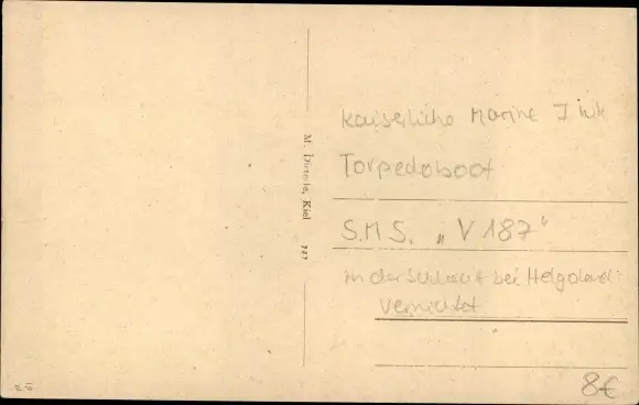 Ak Deutsches Kriegsschiff, SMS V 187 Torpedoboot, Kaiserliche Marine