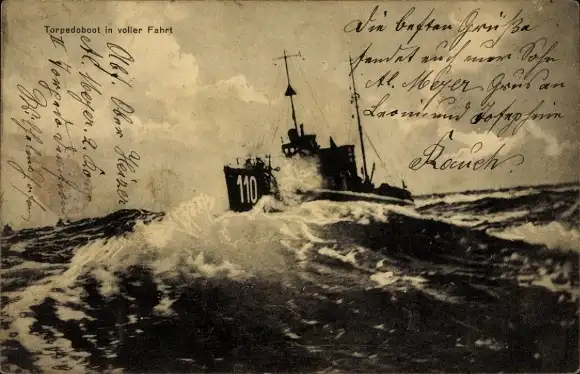Ak Deutsches Kriegsschiff, Torpedoboot Nr. 110 in voller Fahrt, Kaiserliche Marine