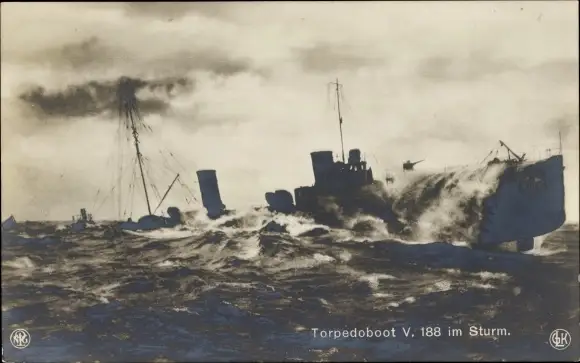 Ak Deutsches Kriegsschiff, Torpedoboot V 188 im Sturm, Kaiserliche Marine, NPG, GLK