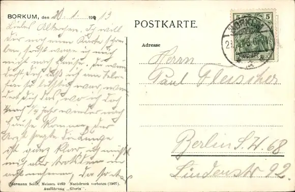 Zustand, siehe Scan, gelaufen, 1913 - ca 14 cm X 9 cm