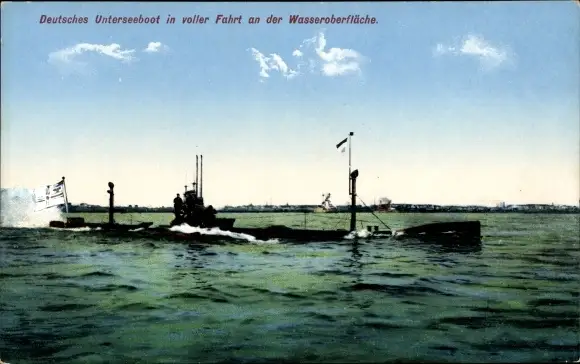 Ak Deutsches Kriegsschiff, Unterseeboot in voller Fahrt an der Wasseroberfläche