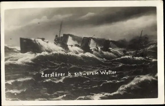 Ak Deutsches Kriegsschiff, Zerstörer bei schwerem Wetter
