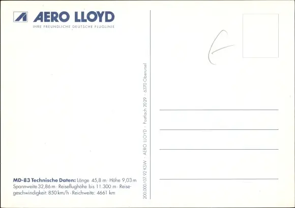 Ak Deutsches Passagierflugzeug, Aero Lloyd, McDonnell Douglas MD 83