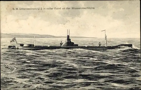 Ak Deutsches U Boot, SM U 2 in voller Fahrt an der Wasseroberfläche