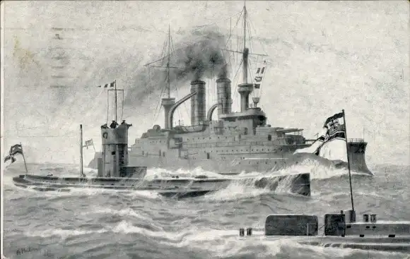 Ak Deutsches U Boot, U-Boot vor einem Linienschiff, U-Boot-Spende 1917