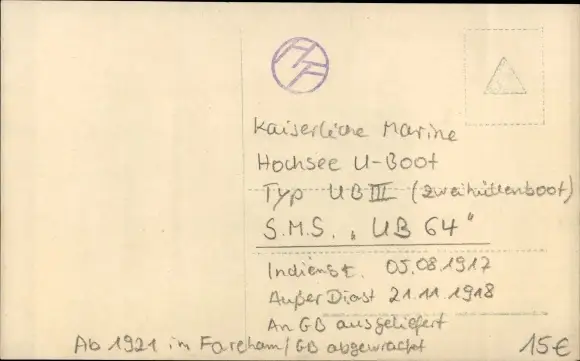 Ak Deutsches U Boot, Unterseeboot, Kaiserliche Marine, SMS U 64, Untersee Kreuzer